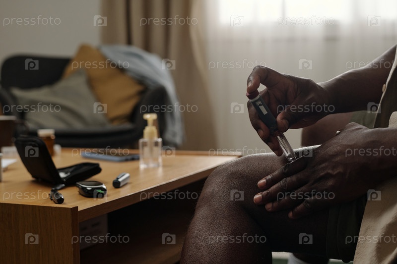 Человек, проверяющий уровень глюкозы в крови на домашней установке