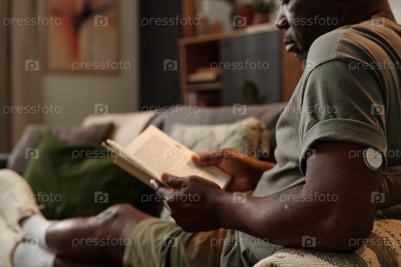 Африканский американец читает книгу на удобном диване