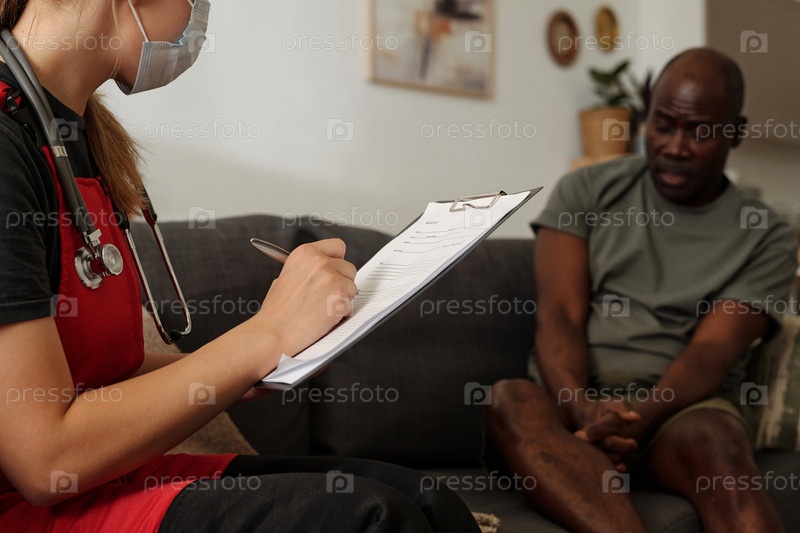 Медсестра, посещающая пожилого пациента в домашней обстановке