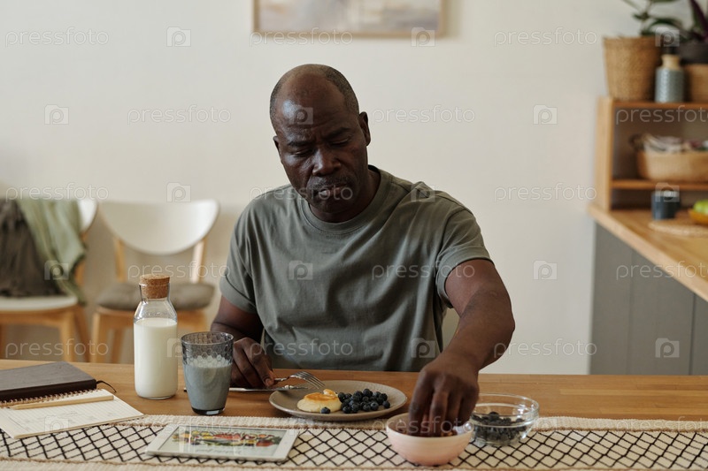 Африканский американец наслаждается завтраком дома