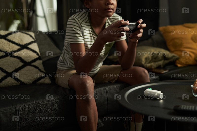 Стол с ингалятором и мальчик с джойстиком