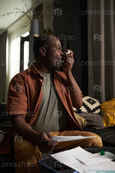 Мужчина, использующий ингалятор во время приступа астмы