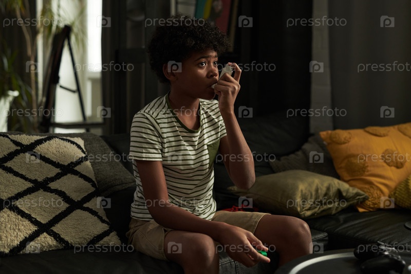 Мальчик закачивает ингалятор в рот
