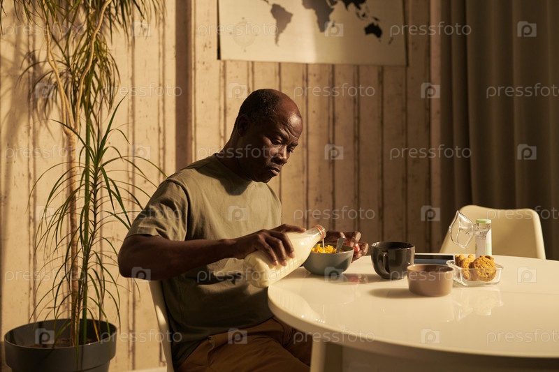 Наливать молоко в миску с кукурузными хлопьями