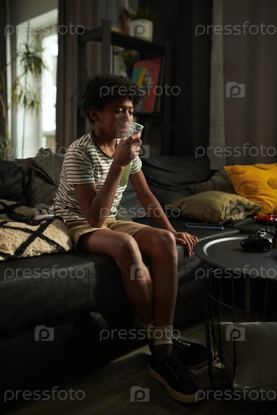 Мальчик дышит парами из ингаляторной маски