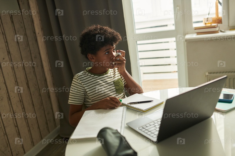 Мальчик накачивает ингалятор во время приступа астмы