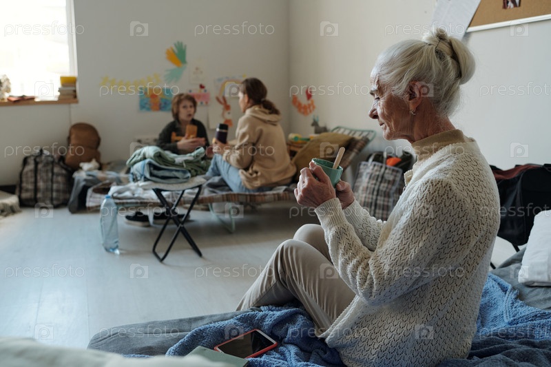 Пожилая женщина-мигрантка пьет чай
