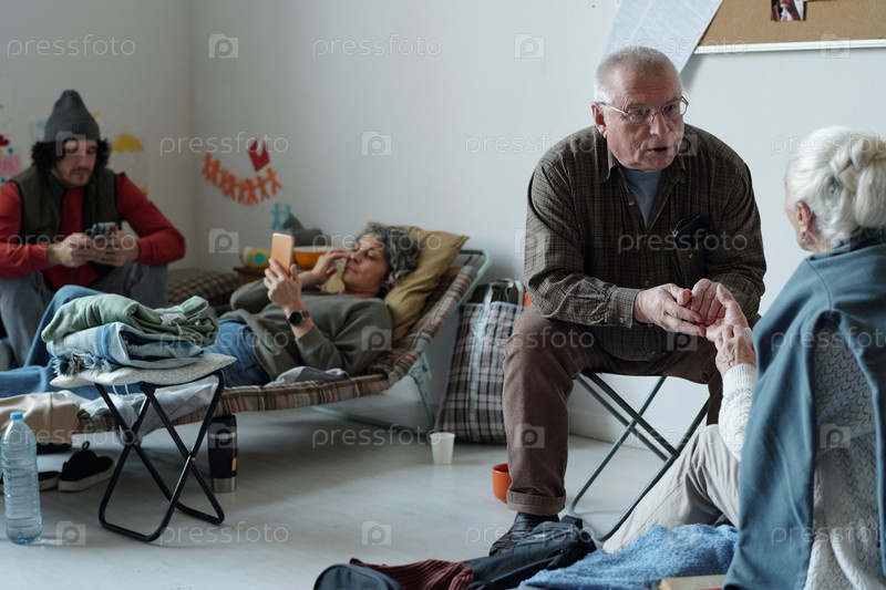 Зрелый мужчина поддерживает старшего беженца