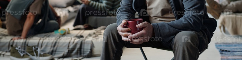 Старший беженец мужского пола, держащий чашку чая