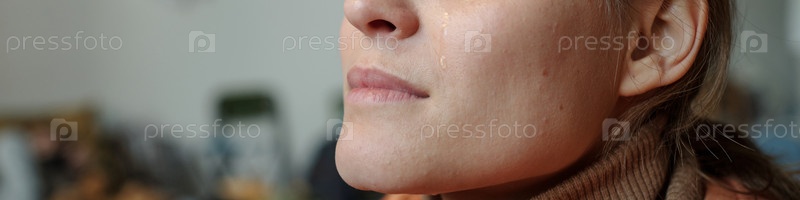 Лицо молодой плачущей беженки