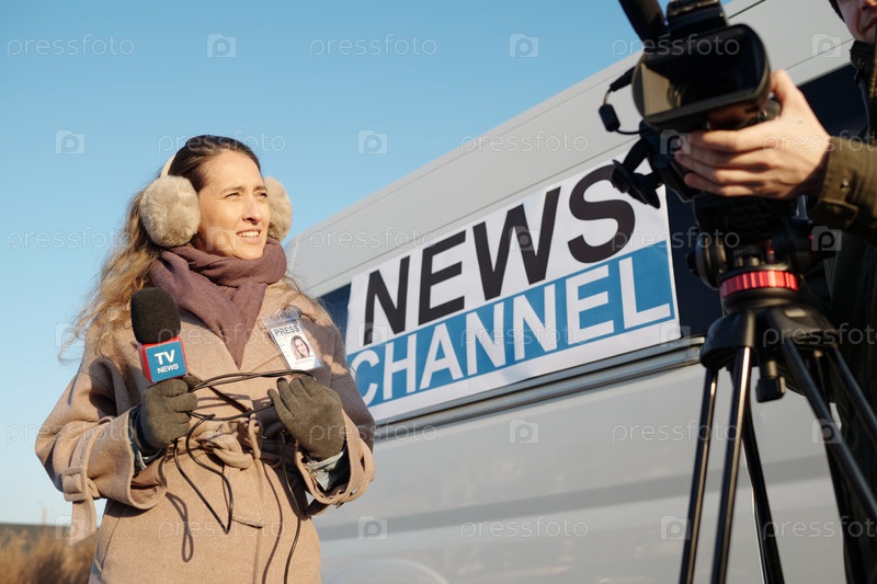 Женщина-журналист смотрит на оператора
