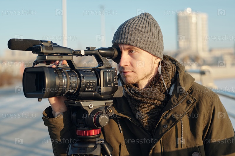 Мужчина снимает кадры на видеокамере