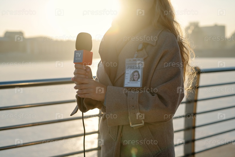 Молодая журналистка с микрофоном