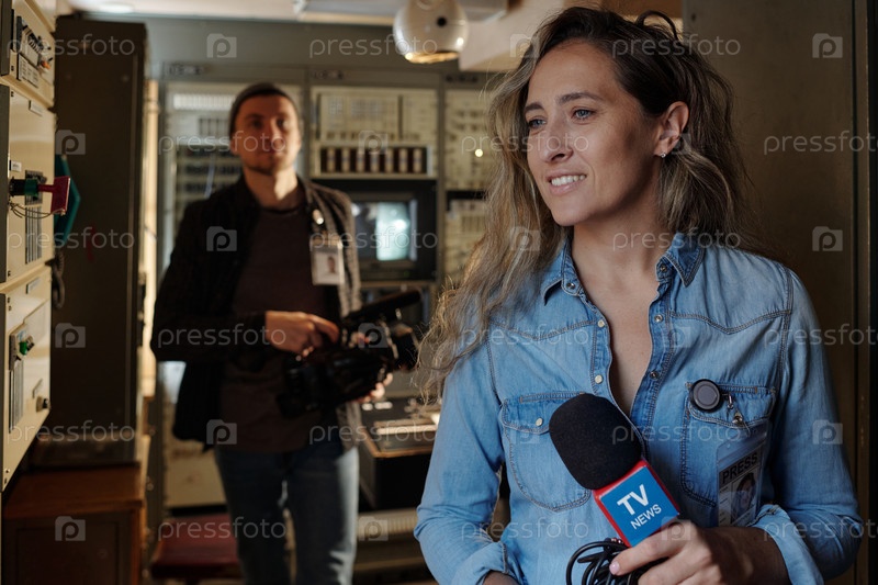 Счастливый журналист с микрофоном