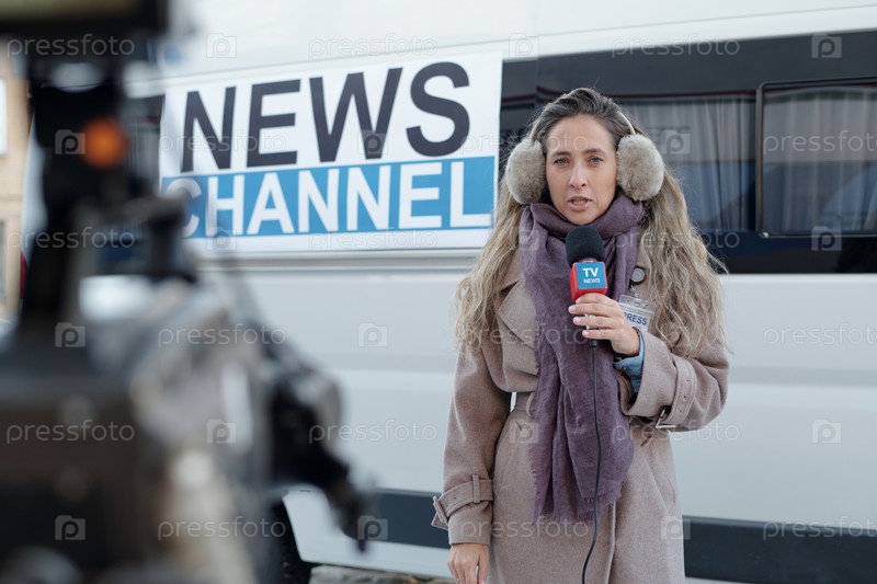 Уверенная женщина-репортер by TV van