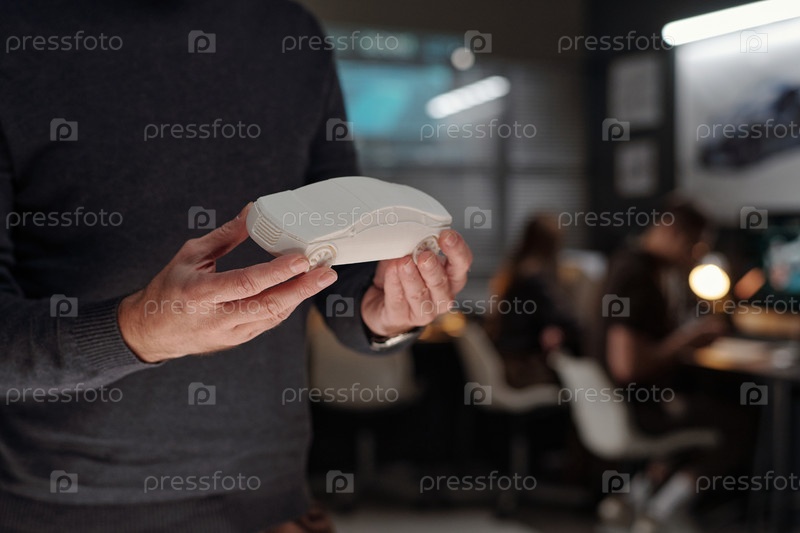 Белая модель автомобиля в руках дизайнера