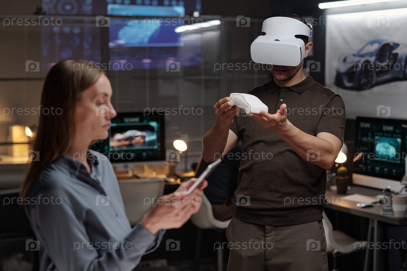 Молодой инженер-мужчина в гарнитуре VR