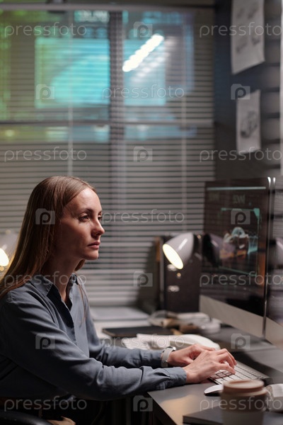 Серьезная женщина-дизайнер в серой рубашке