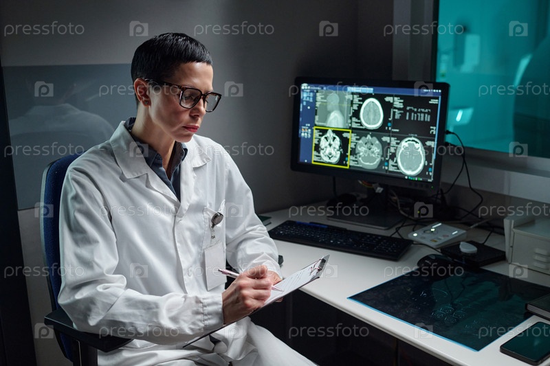 Портрет медицинского работника, осматривающего записки пациентов