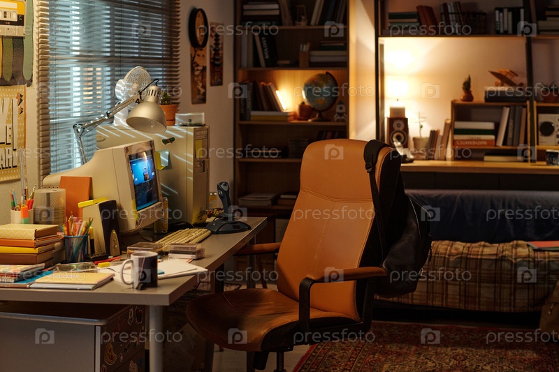Хорошо организованный домашний офис с современным декором и освещением
