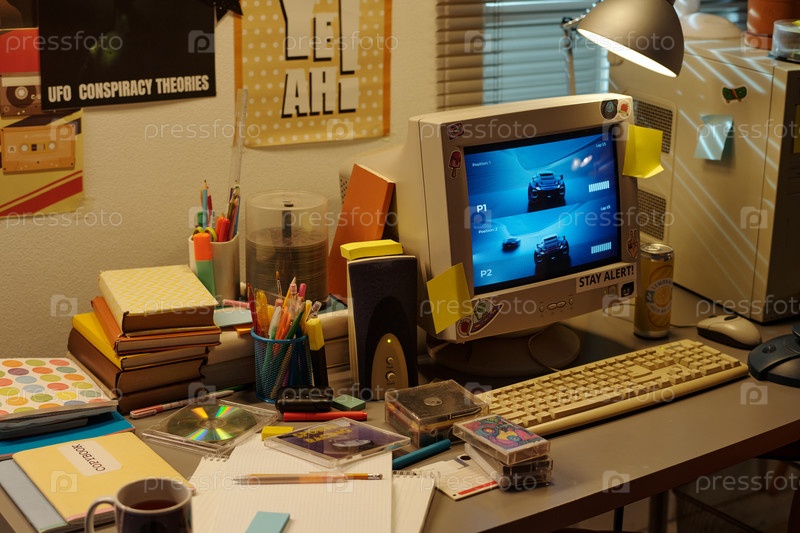 Организованный стол для отображения компьютера, книг и канцелярских принадлежностей