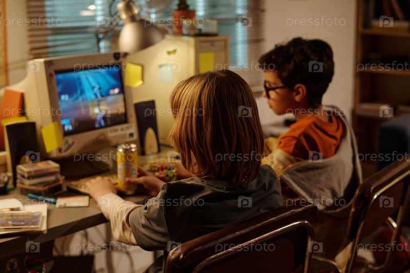 Дети играют в видеоигры в уютной комнате