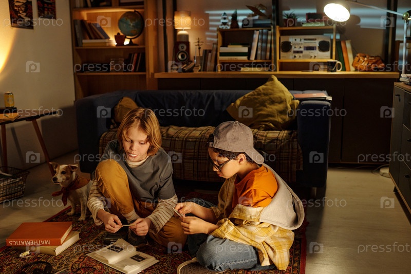 Два ребенка, которые вместе наслаждаются вечерней активностью в помещении