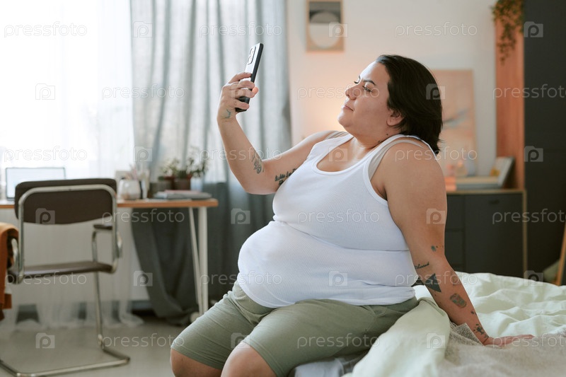 Беременная женщина отдыхает и делает селфи по телефону
