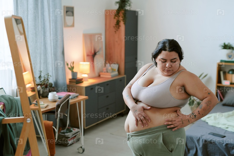 Женщина, регулирующая одежду для тренировок в уютной спальне