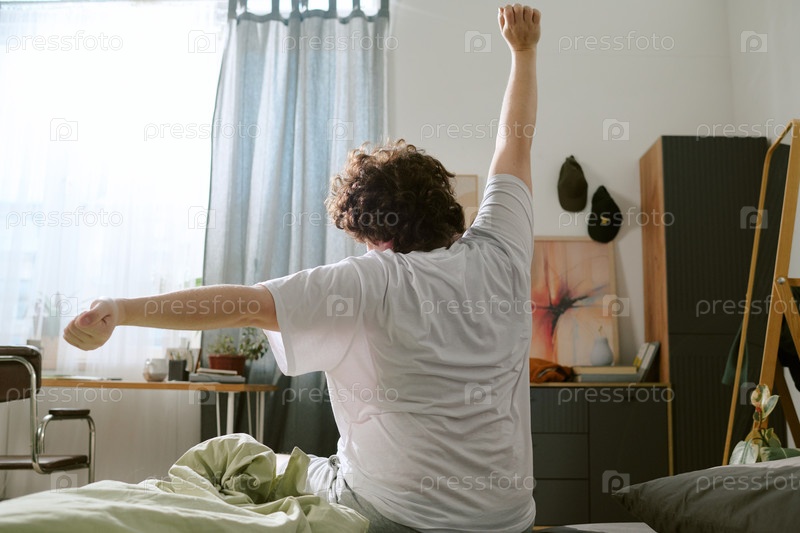 Растягивание в уютной спальне на солнечное утро