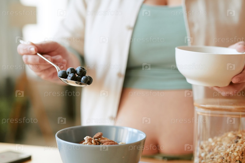 Приготовление здорового завтрака со свежими черники