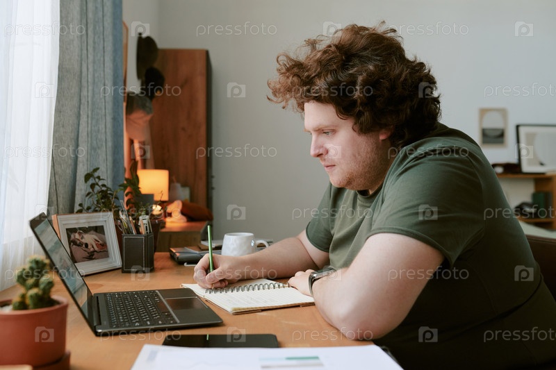 Человек, работающий из дома с помощью ноутбука на деревянном столе