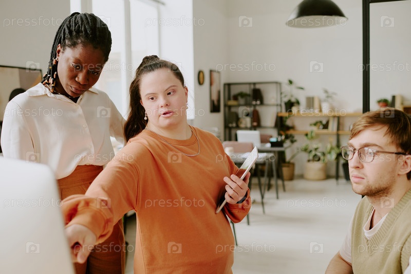 Ценный сотрудник, указывающий на экран компьютера