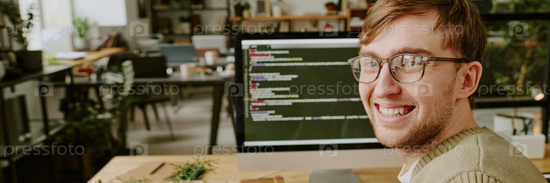 Заголовок с мужским селфи на работе