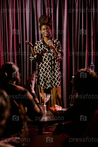 Исполнение стенд-ап комедии на сцене с микрофоном