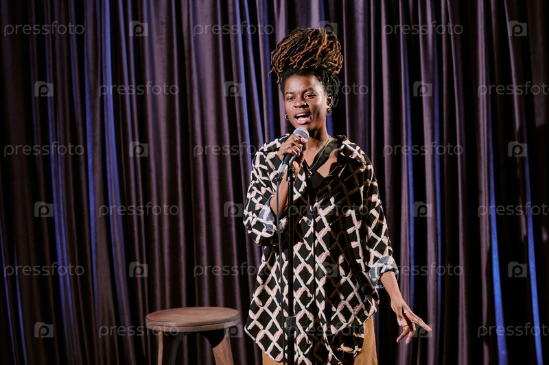 Исполнение стенд-ап комедии на сцене с микрофоном