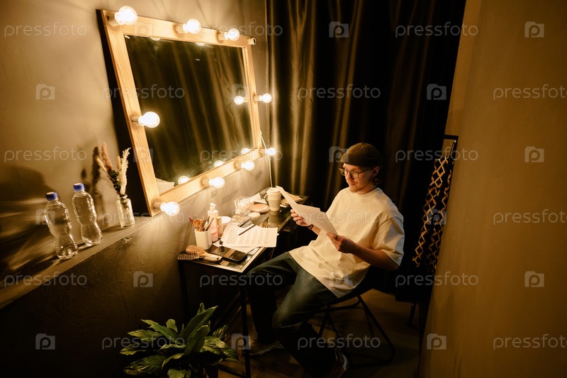 Просмотр сценария за столом в раздевалке