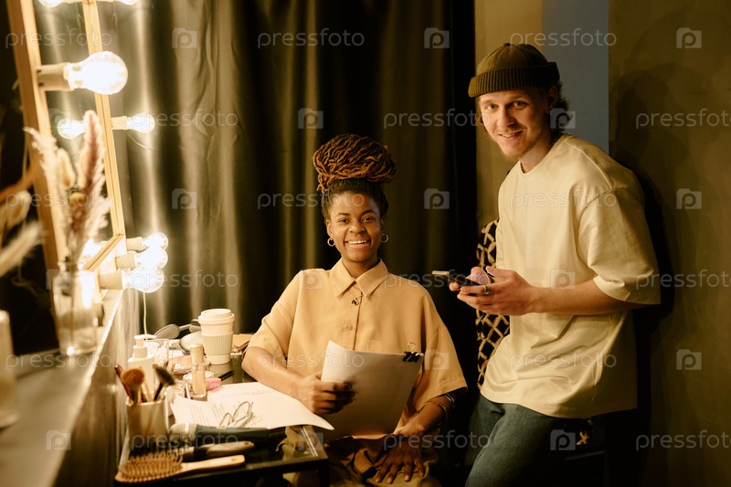 Подготовка к фотосессии с улыбающейся макияжной артисткой