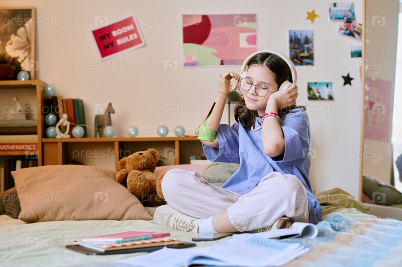 Слушать музыку во время учебы в уютной спальне