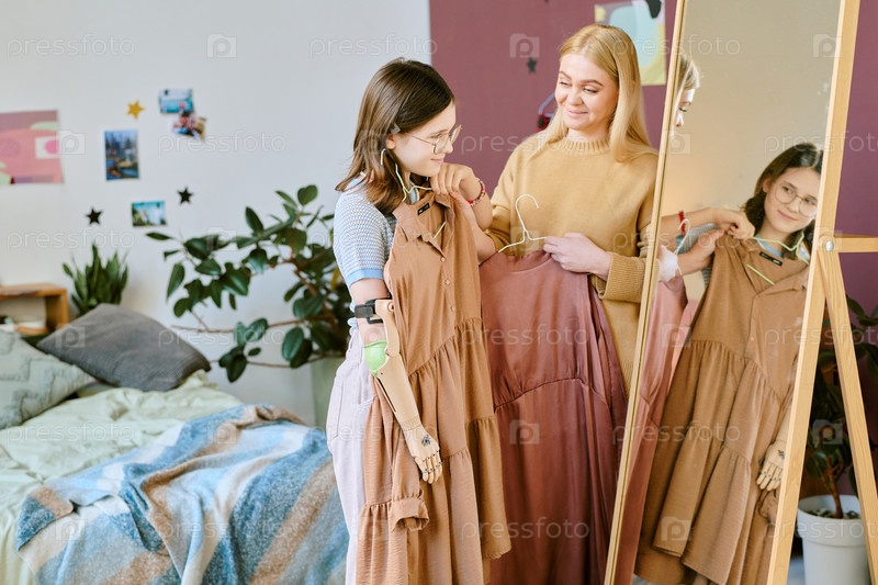 Помочь дочери выбрать платье в спальне с помощью отражающего зеркала
