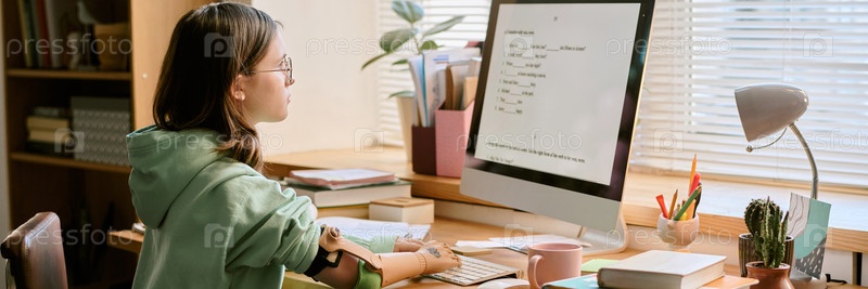 Подросток учится в уютном домашнем рабочем пространстве с компьютером