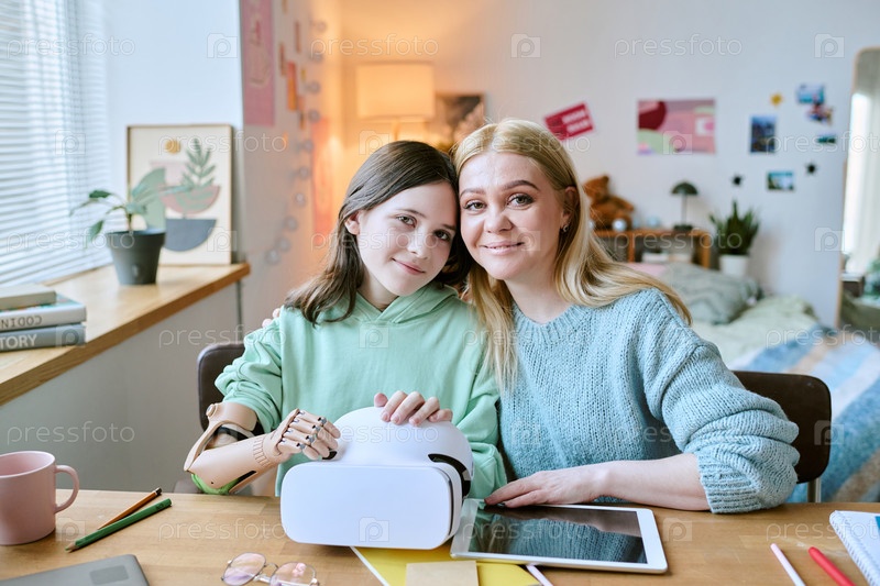 Портрет матери и дочери, улыбающихся, сидя вместе