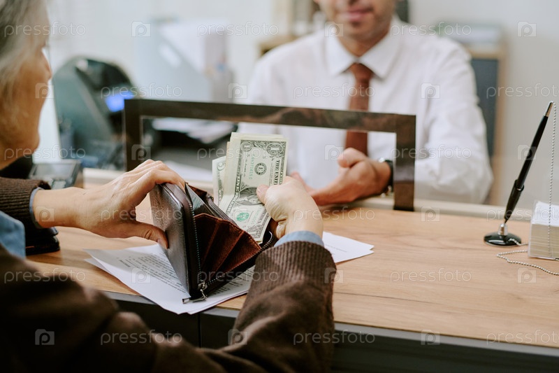 Передача наличных денег на фронтальном столе финансового учреждения