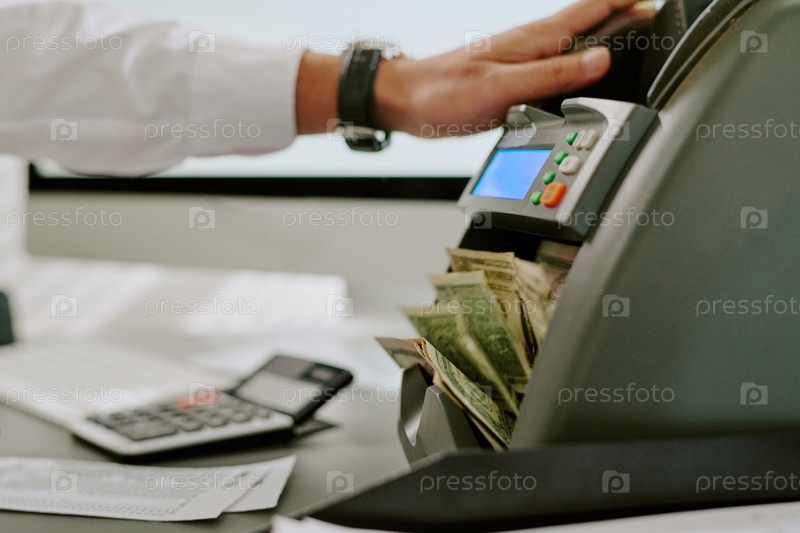 Подсчет денег с помощью электронного кассового регистра в офисной обстановке