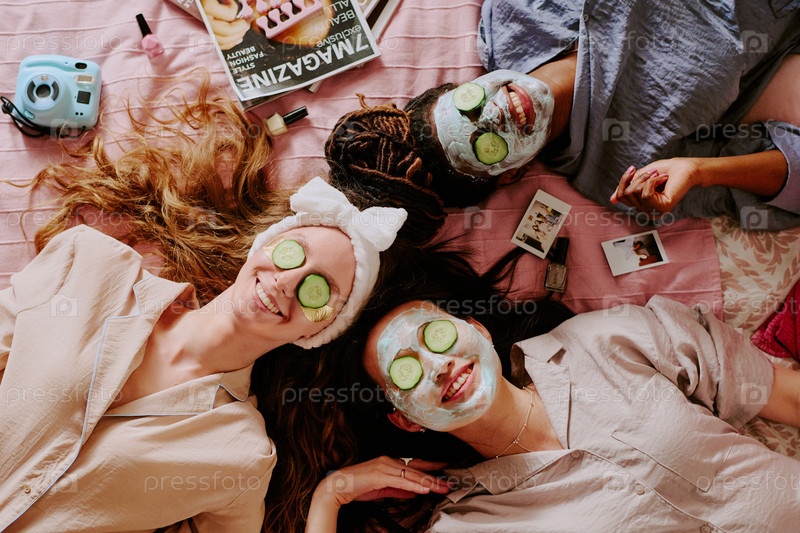 Женщины с глиняной маской и огурцами