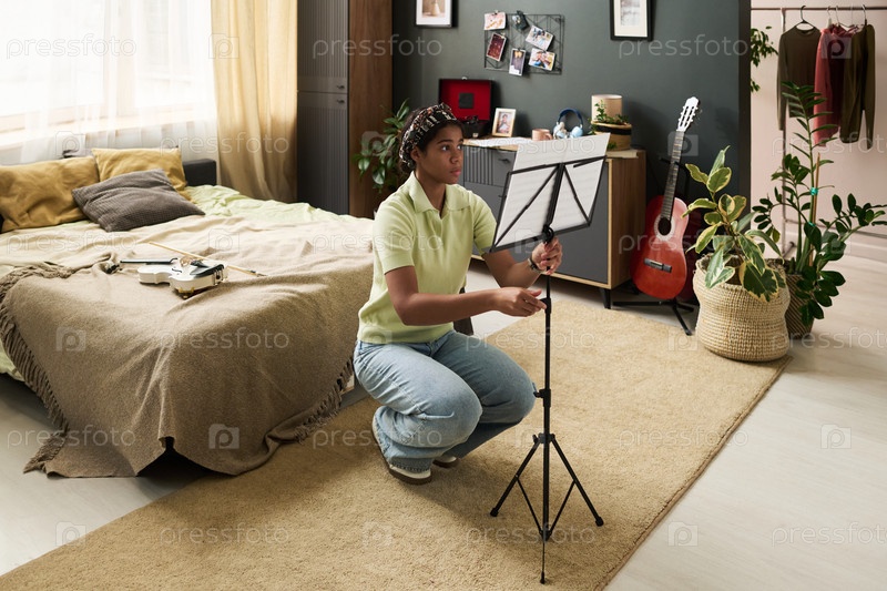 Практика игре на скрипке в уютной спальне с естественным светом