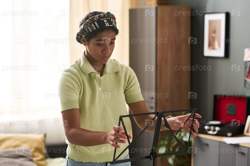 Портрет подросткового музыканта, регулирующего музыку Stand at Home