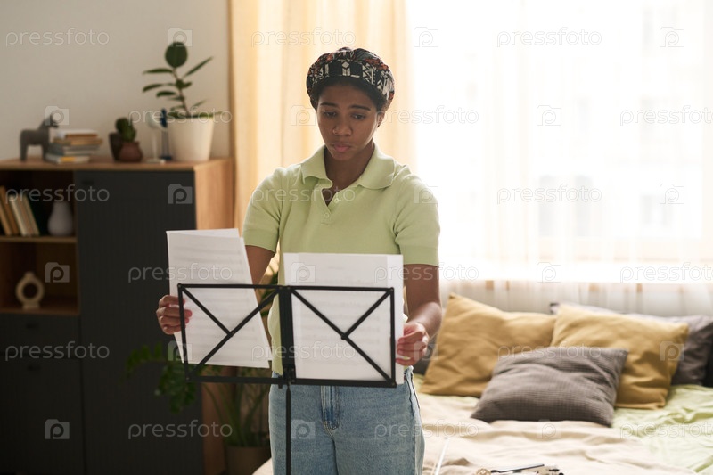 Портрет девочки-подростка, читающей музыкальные листы дома