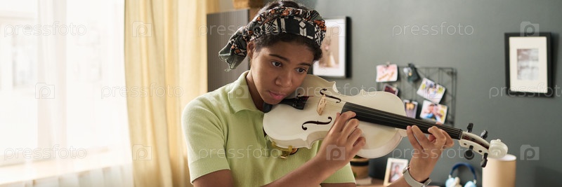 Практиковаться на скрипке дома с решительным выражением