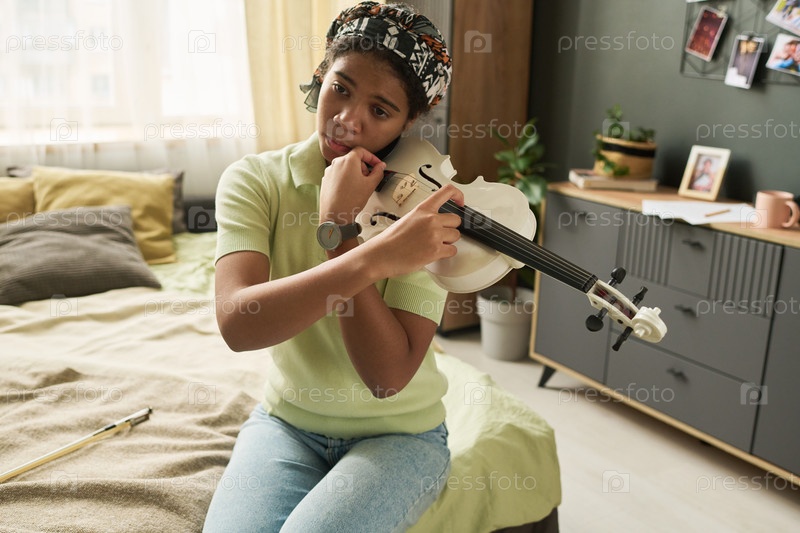 Созерцание скрипача, сидящего в спальне